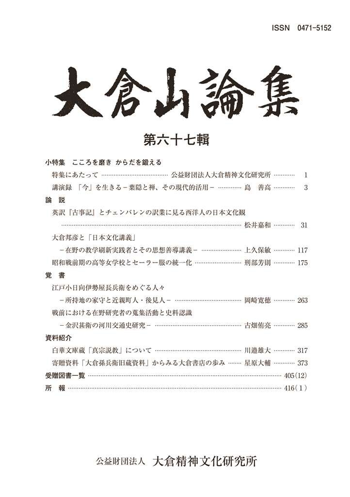 公益財団法人大倉精神文化研究所「特集にあたって」